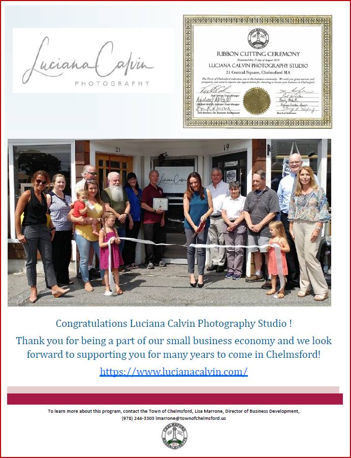I have been waiting for a long time to be part of the Chelmsford Village Business community and last week I finally celebrated Luciana Calvin Photography Studio ribbon cutting ceremony along with Town of Chelmsford, Greater Lowell Chamber of Commerce, awesome Local business owners, family and dear friends.
